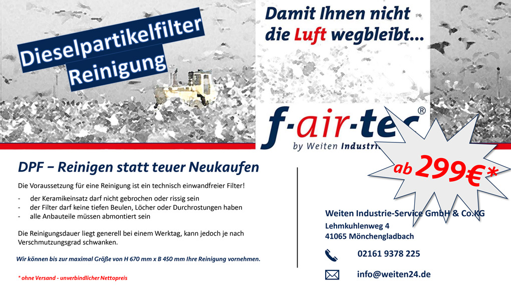 Unser erfahrenes Team ist darauf spezialisiert, Diesel-Partikelfilter zu reinigen und zu warten. Mithilfe modernster Technologien und bewährter Verfahren gewährleisten wir eine gründliche und effiziente Reinigung Ihres DPFs, um optimale Leistung und Langlebigkeit sicherzustellen. Eine professionelle Regeneration des Dieselpartikelfilters ist nicht nur entscheidend für die Leistung Ihres Fahrzeugs, sondern auch für den Umweltschutz. Durch die regelmäßige Wartung Ihres Diesel-Partikelfilters verbessern Sie nicht nur die Motorleistung, sondern reduzieren auch Emissionen und Kraftstoffverbrauch. Vernachlässigen Sie daher nicht diese wichtige Wartungsmaßnahme.